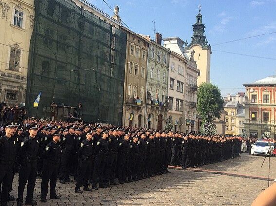 На центральной площади Львова состоялось торжественное принятие присяги новыми сотрудниками патрульной полиции, сообщили в пресс-службе Министерства внутренних дел Украины. Присягу на площади Рынок приняли 407 патрульных полицейских, еще около 200 проходят обучение. По словам замминистра внутренних дел Эки Згуладзе, только 9,8% составляют сотрудники милиции. Также в ходе торжественной церемонии была представлена в качестве заместителя главы патрульной полиции Львова невестка Героя Украины, генерал-майора Сергея Кульчицкого, погибшего в зоне АТО в мае 2014 года.