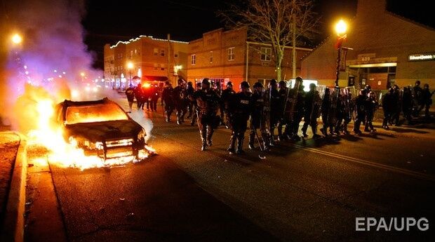 – В американском городке Фергюсон (штат Миссури) сразу после оглашения вердикта по резонансному делу об убийстве полицейским темнокожего подростка вспыхнули уличные беспорядки. Всю прошедшую ночь в Фергюсоне постоянно была слышна стрельба.