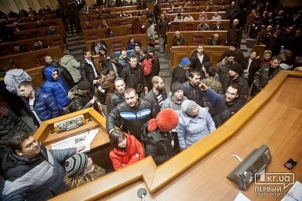 Около 60 протестующих, занявших здание Криворожского горсовета, объявили голодовку. Они требуют отставки городского головы Юрия Вилкула и встречи с представителями президента и главы Днепропетровской облгосадминистрации Игоря Коломойского.