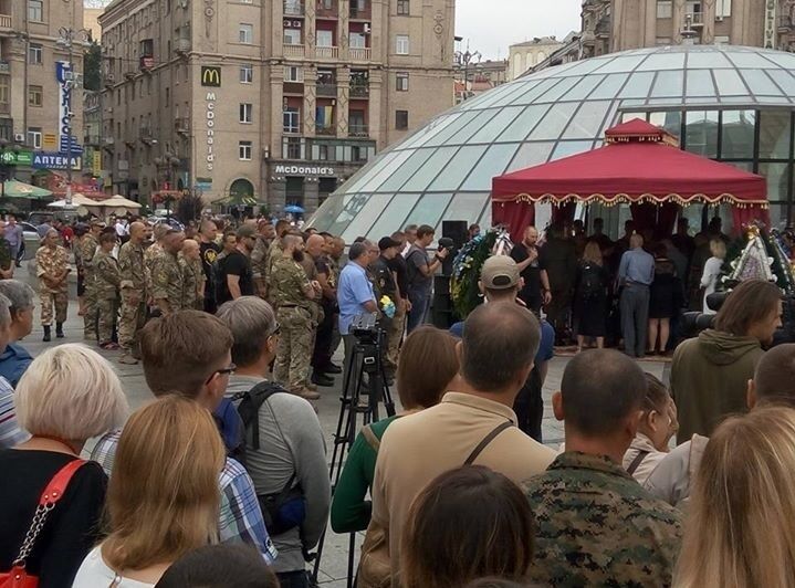 В Киеве на Майдане прошла церемония прощания с волонтером и бывшим участником АТО Андреем Галущенко (позывной Эндрю), который погиб под Счастьем Луганской области.