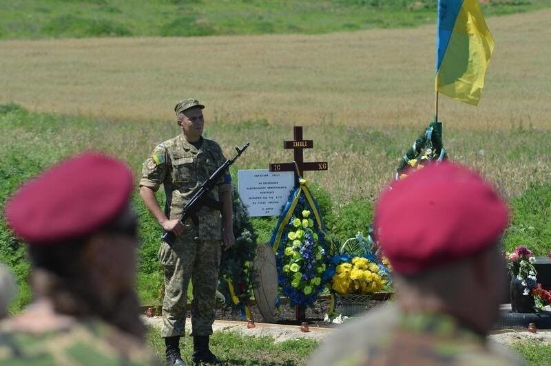 На месте гибели украинских военнослужащих на горе Карачун установили памятный знак, сообщает пресс-центр антитеррористической операции. Возле памятника состоялся митинг к первой годовщине освобождения от пророссийских бандформирований Славянска и Славянского района Донецкой области. В завершение церемонии участники мероприятия поблагодарили украинских военных за мирное небо и возложили к мемориалу венки и цветы.