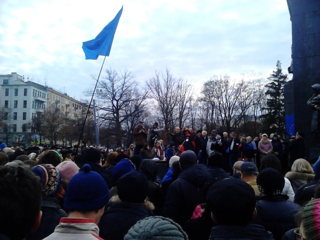 Около памятника Тарасу Шевченко в Харькове собралось около тысячи человек, готовых отстаивать право на подписание соглашения между Украиной и ЕС.