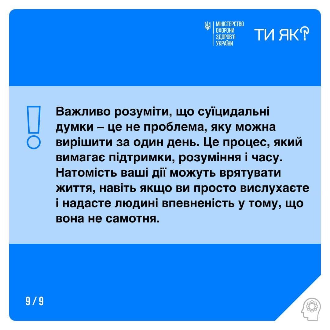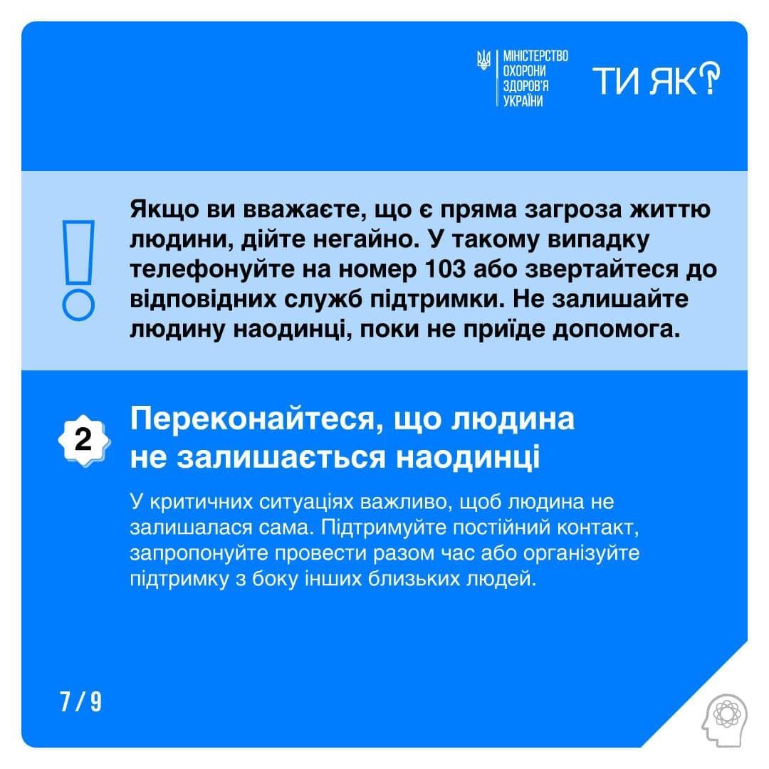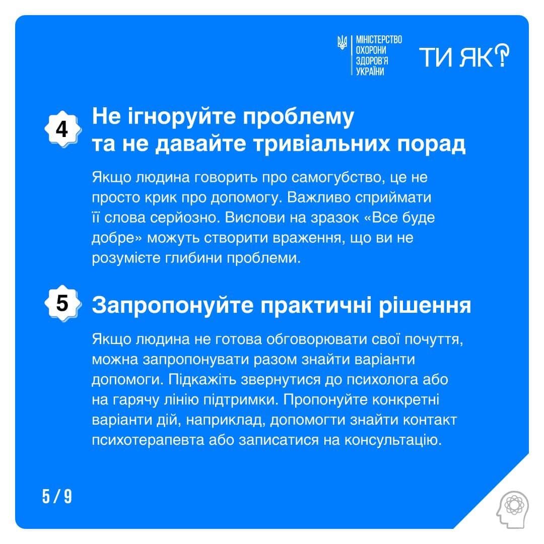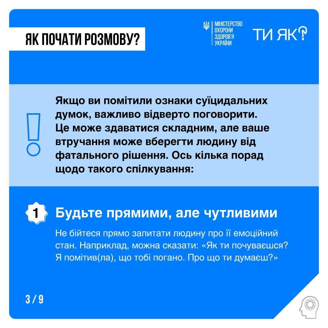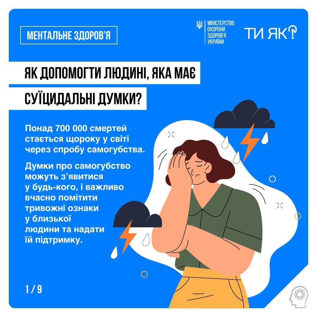 15 сентября в Facebook Министерство здравоохранения Украины посоветовало людям обращать внимание на ближних, чтобы вовремя предупредить самоубийство.