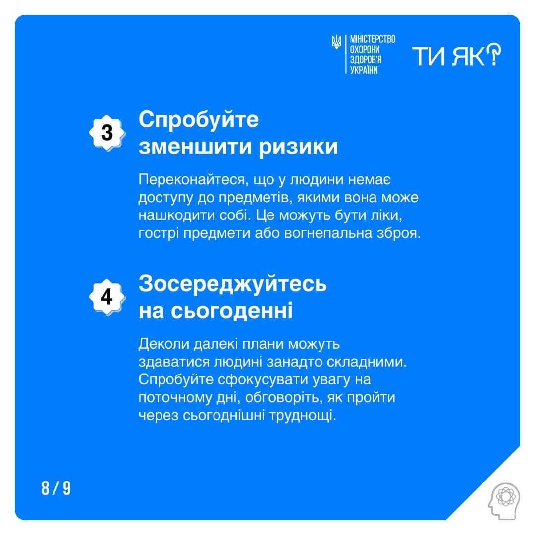 Украинское министерство опубликовало инфографику, которая, по его мнению, поможет при подозрении, что у друга или родственника есть "суицидальные мысли".