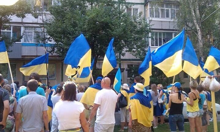 Харьковские активисты провели акцию у дома женщины, которая избивала евромайдановцев. Фоторепортаж