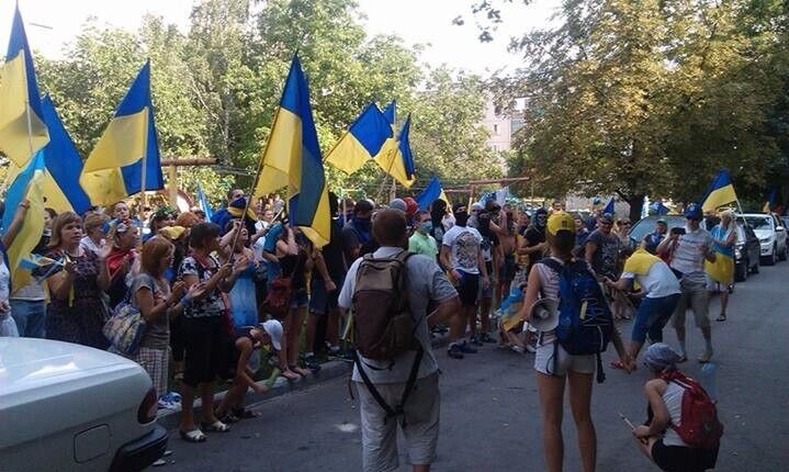 Харьковские патриоты провели акцию у дома медработника, которая в апреле этого года принимала участие в избиениях активистов Евромайдана в Харькове. Вместе с майдановцами к акции присоединились футбольные фанаты и активисты Автомайдана.