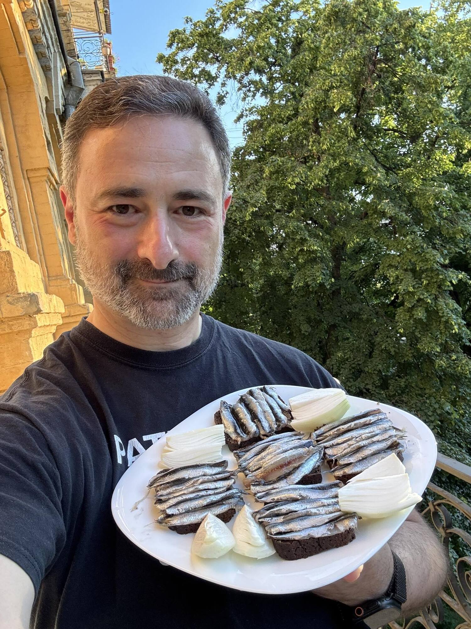 "В Киеве наконец-то лето. И хотя, к сожалению, до Одессы доехать пока времени нет, можно всегда немного Одессы сделать себе самостоятельно. Так что тюлька с молодым луком, а всем спокойного и вкусного вечера субботы", – написал Смелянский.
