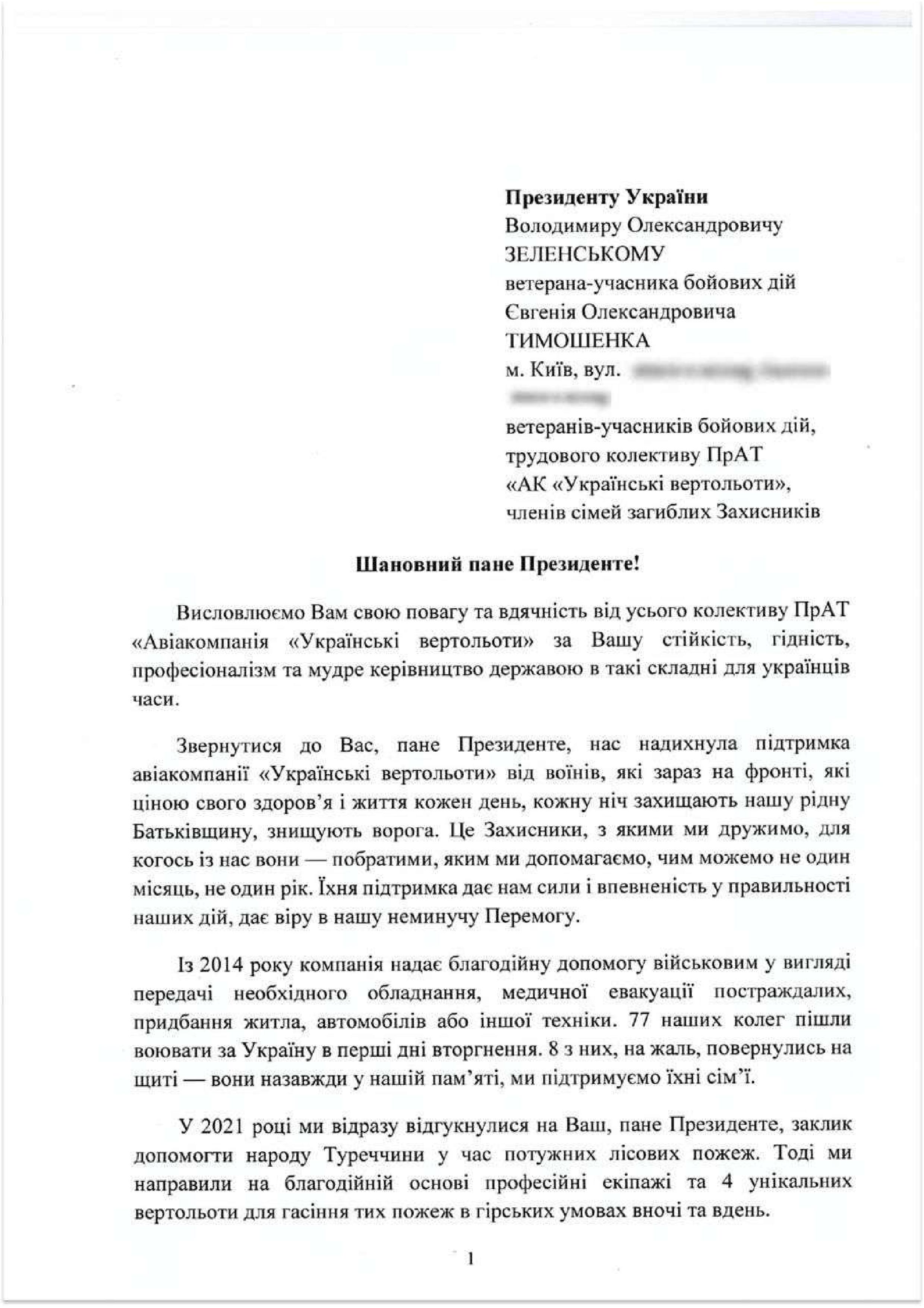 "Однако с первых дней полномасштабного вторжения на наш коллектив происходит непрерывная атака, целью которой является препятствование продуктивной деятельности, доведение до банкротства, а, в конце концов, рейдерский захват авиакомпании. Для достижения этой цели против нашей авиакомпании было открыто шесть уголовных производств, в том числе за оказание гуманитарной помощи. В июне 2022 года был задержан глава совета директоров Владимир Ткаченко по обвинению в якобы наличии у него российского паспорта и пребывании в 2018–2019 годах на территории государства-агрессора. Кроме этого, обвиняли, что он не принял необходимых мер по возвращению восьми вертолетов Национальной гвардии, которые были в аренде. Через двое суток суд признал лживость этих обвинений и уволил господина Ткаченко без каких-либо условий", – говорится в открытом письме.