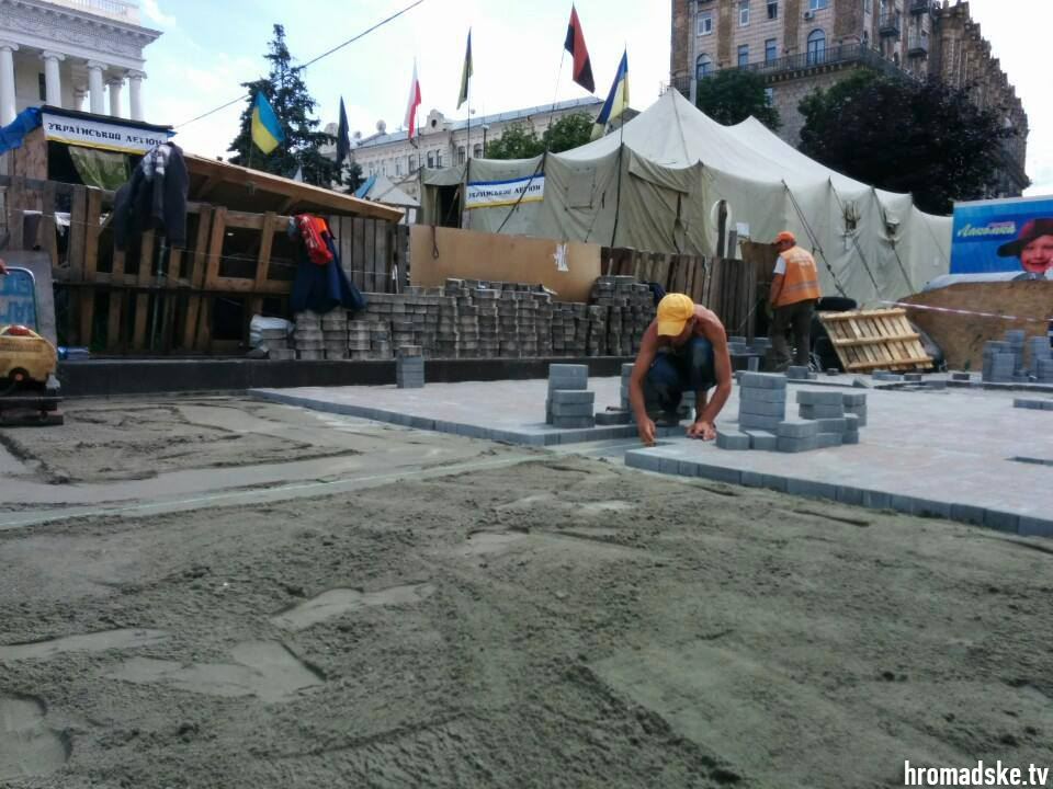 На фото, которые выложило издание, видно, что строители кладут покрытие на Майдане Незалежности, недалеко от консерватории.