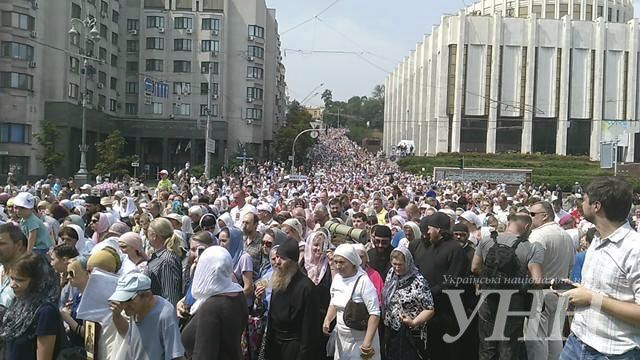 По информации издания НБН, крестный ход дошел до Киево-Печерской лавры, в колонне уже около 20 тысяч человек. "Голова" крестного хода зашла на территорию Лавры, где должен состояться торжественный молебен. При этом "хвост" колонны только покинул Европейскую площадь.