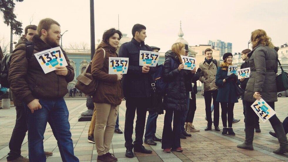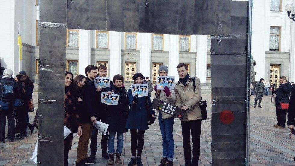 В четверг, 19 марта, под Верховной Радой митинговали активисты, которые требовали принять закон №1357 об общественном вещании. На митинг вышли несколько десятков человек, в основном – представители медиа-организаций и журналисты, хотя, по данным "Громадського ТБ", приглашения получили более тысячи человек. Возле здания парламента установили импровизированный "экран", возле которого балерина танцевала "Лебединое озеро". Как сообщила в комментарии "Укринформу" представительница организации "Стоп цензуре" Ксения Юрина, танец символизировал замалчивание информации в украинском телепространстве. По мнению активистов, закон №1357 уменьшит влияние олигархов на украинское информпространство.
