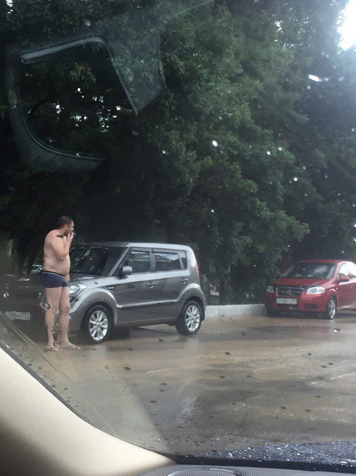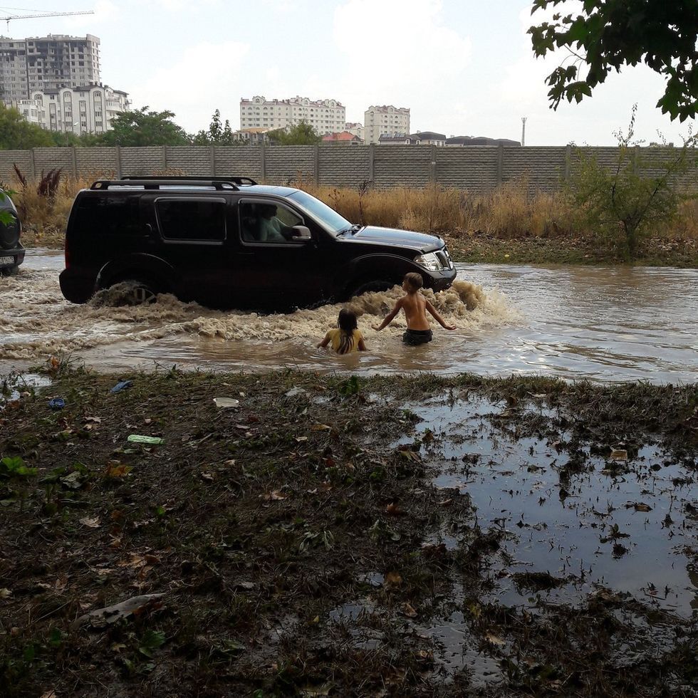 На опубликованных очевидцами снимках видно, как в глубоких лужах в Севастополе купаются дети.