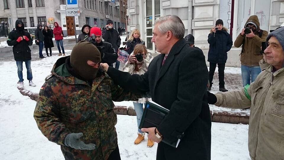 Митингующие в Харькове пытались посадить в мусорный бак депутата горсовета от ПР. Фоторепортаж