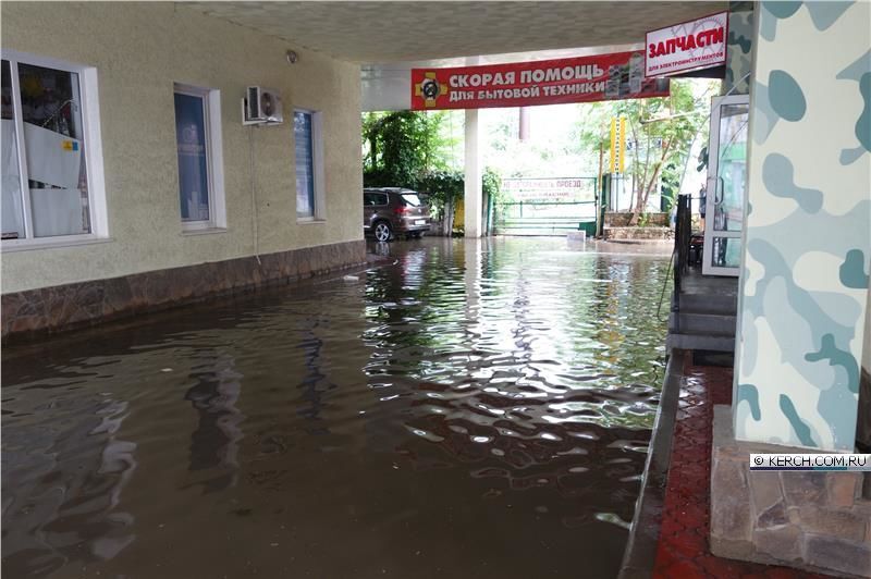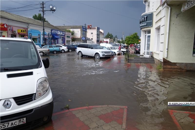 Неработающая система ливневок в Керчи парализовала центральные городские улицы, затопленные ливнем.
