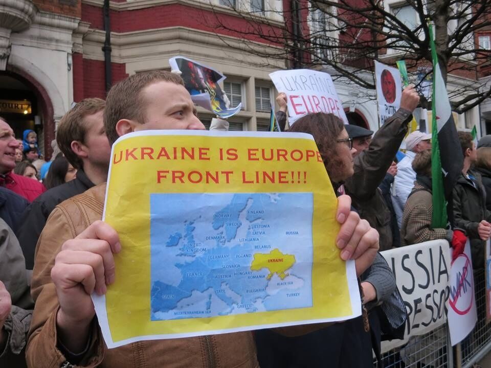 "Правительство Великобритании должно использовать все доступные ему средства, чтобы отправить (Владимиру) Путину четкое сообщение – введение санкций, арест британских активов, запрет на поездки на Запад для всех государственных чиновников, экономическая помощь и миротворческая миссия в Украине", – призывают участники лондонского Евромайдана.