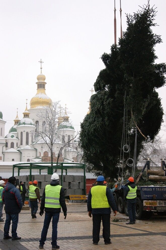 9 декабря на Софийской площади в Киеве установили 24-метровую карпатскую елку, сообщает "РБК-Украина" со ссылкой художественный проект Folk Ukraine, занимающийся организацией празднования Нового года в столице.