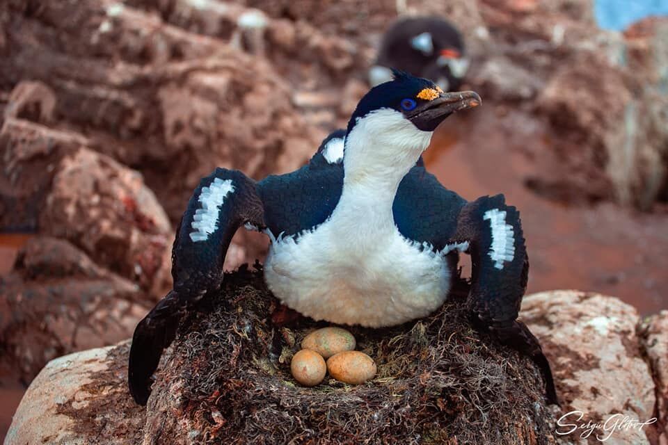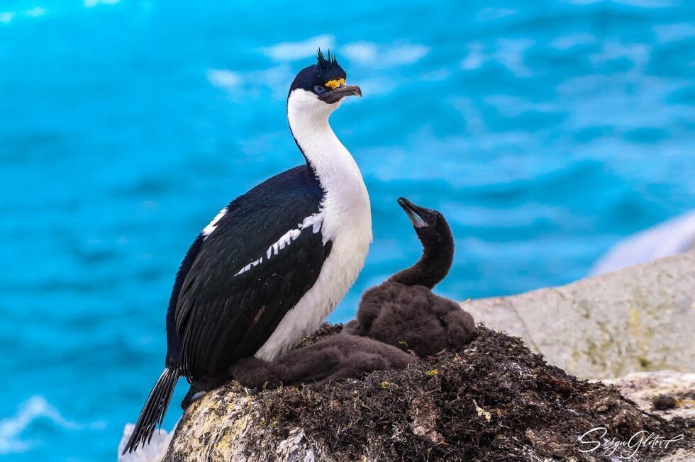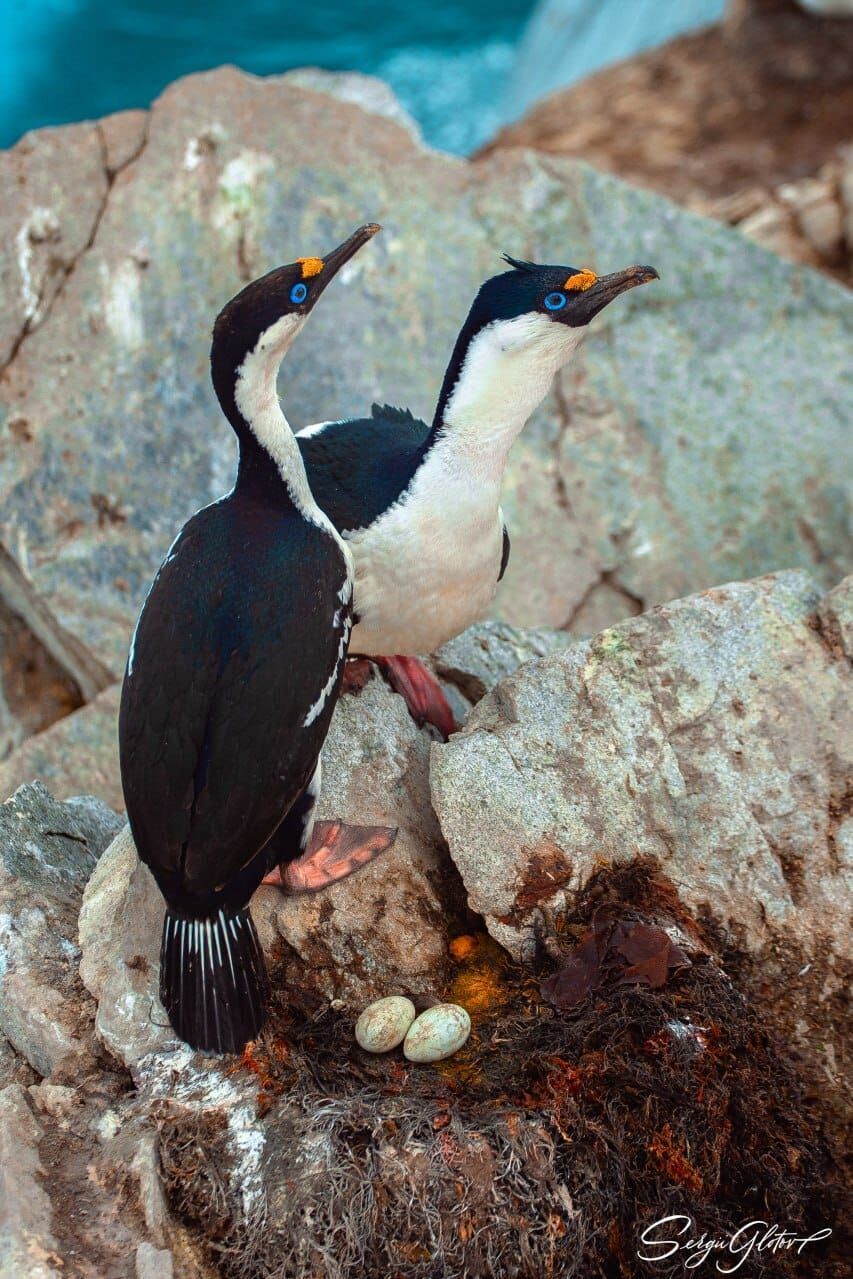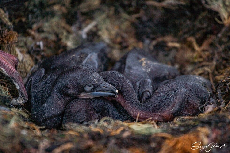 Фотографии сделаны на одном из соседних со станцией островов – Питермани. Там есть две колонии синеглазых бакланов, которые украинские ученые постоянно мониторят. Одна большая, в ней более полусотни гнезд, а другая маленькая – до 15. В каждом из гнезд – от одного до трех птенцов.