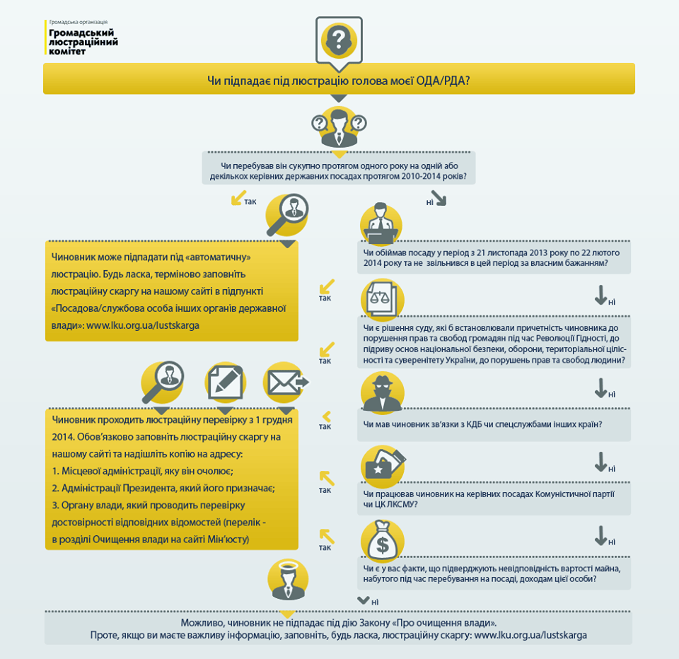 Последовательно отвечая на вопросы теста, можно выяснить, подпадает ли под люстрацию глава районной, областной или городской администрации.