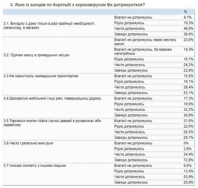 Опрос был проведен с 21-го по 24 марта 2020 на онлайн-платформе Inpoll. Всего было опрошено 402 респондента, проживающих во всех регионах Украины (на подконтрольной правительству территории) по квотной выборке, репрезентативной для городского населения Украины в возрасте от 18 лет, которое пользуется интернетом (около 80% городского населения).