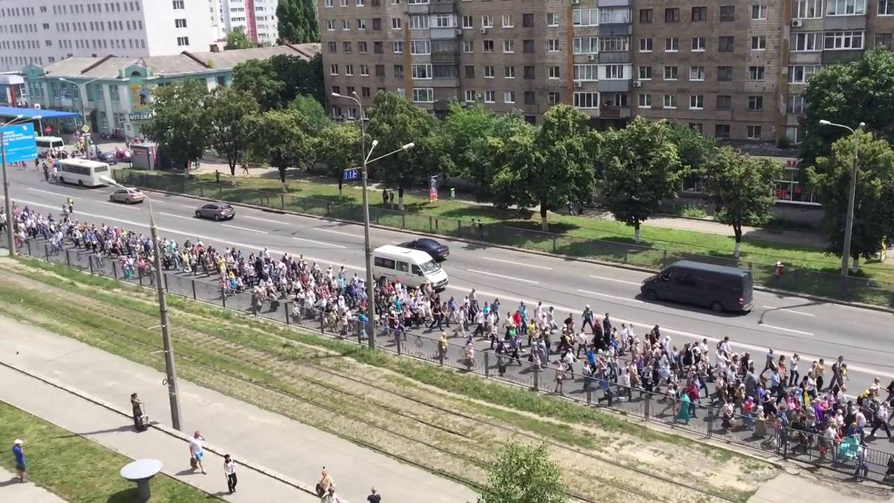 По Харькову прошлись участники крестного хода с георгиевскими лентами. Видео