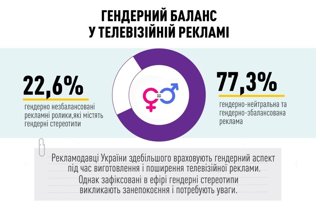 Почти четверть рекламы на ТВ гендерно не сбалансирована, а 5% распространяет гендерные стереотипы – Нацсовет