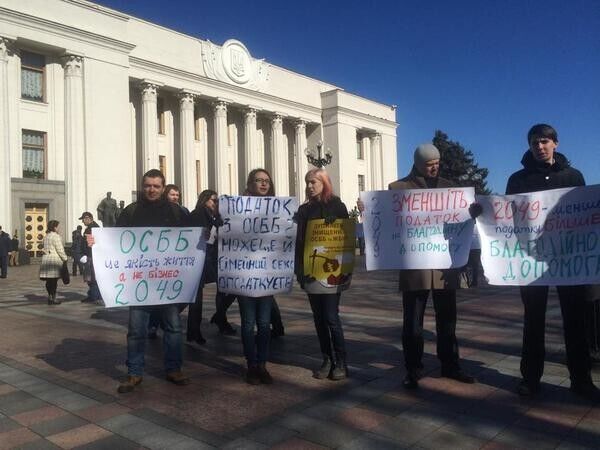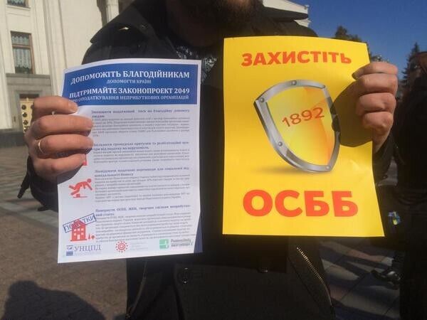Под Радой митинговали с требованием вернуть ОСМД статус неприбыльных организаций. Фоторепортаж