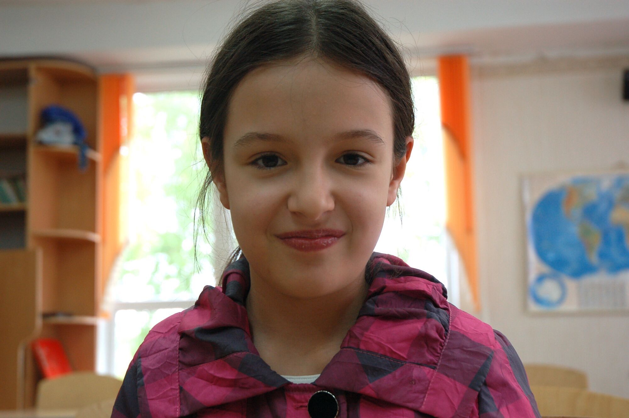 "Сейчас такой режим в Украине настал, что некоторые города Россия хочет себе забрать. Потому что Россия не ладит с Америкой, ведь Америка самая богатая страна. И они соревнуются, чья страна будет больше. И поэтому забирают себе по кусочку от других стран. А еще недавно революция была. На Майдане. Это такая большая городская площадь. Люди туда приходят поговорить о том, что происходит в стране. Вот когда-то горело одно здание и люди пошли на Майдан, чтобы поговорить об этом".