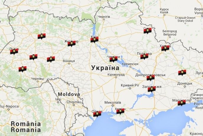 Акции протеста объявлены в Киеве, Днепропетровске, Одессе, Запорожье, Тернополе, Мариуполе, Херсоне, Краматорске, Полтаве и других городах, сообщили в пресс-службе "Правого сектора".