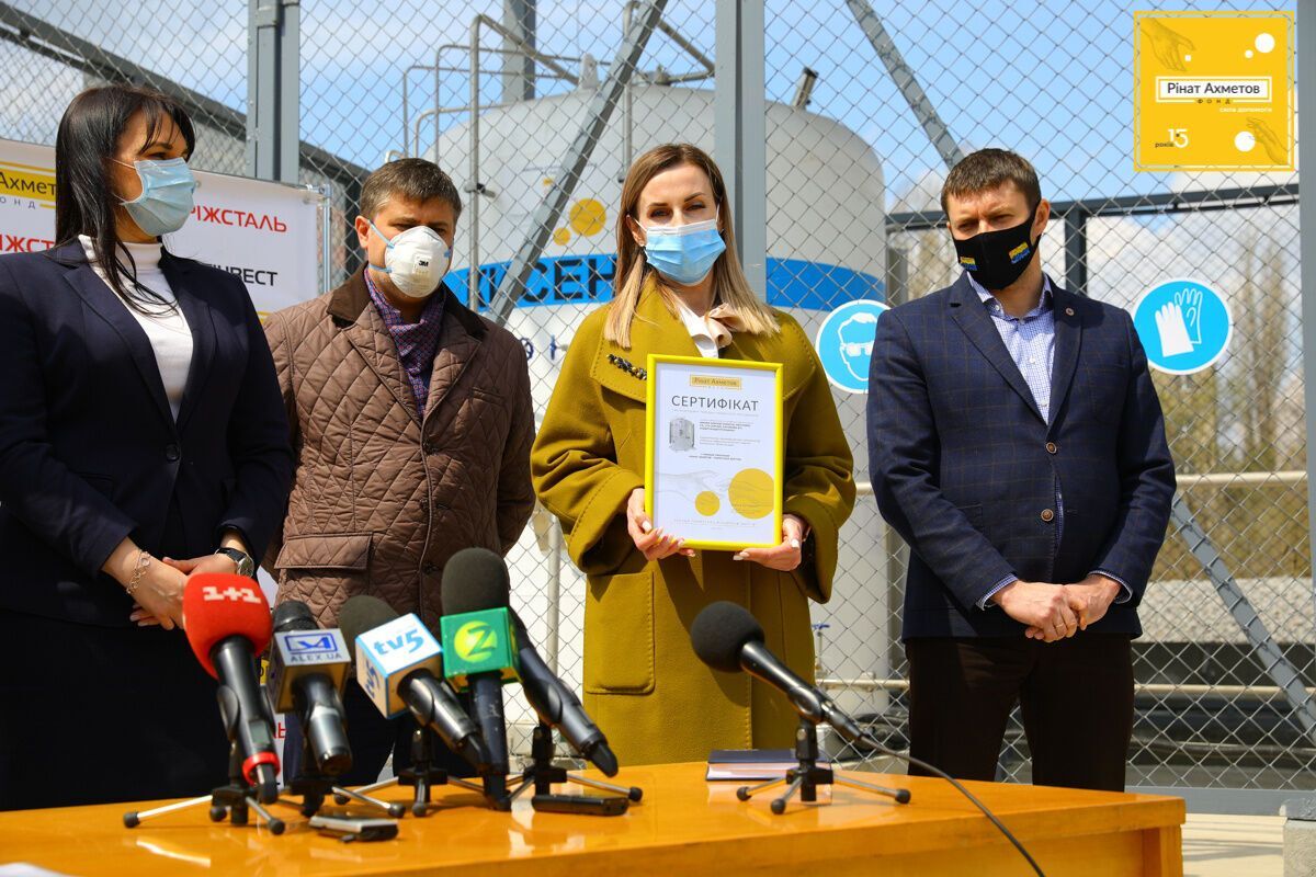 "Обеспечение больниц кислородом для эффективного лечения инфицированных коронавирусом остается сегодня актуальным и важным заданием. Поэтому Фонд Рината Ахметова и ПАО "Запорожсталь" группы "Метинвест" вышли с инициативой о строительстве кислородной станции под ключ в областной больнице. Станция имеет две емкости по 2,5 тонны каждая. Они могут непрерывно подавать кислород со второго по пятый этажи, где создана современная сеть для больных. Эта кислородная станция позволит медикам спасать еще больше жизней и является существенной помощью в борьбе с пандемией", – сказал генеральный директор ПАО "Запорожсталь" Александр Мироненко.