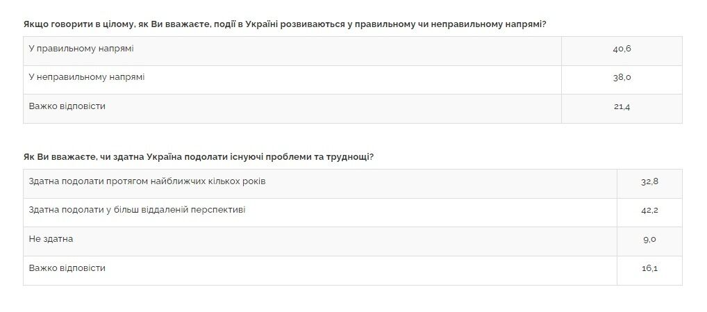 Участники опроса ответили также на вопрос, способна ли Украина, по их мнению, преодолеть существующие проблемы и трудности.