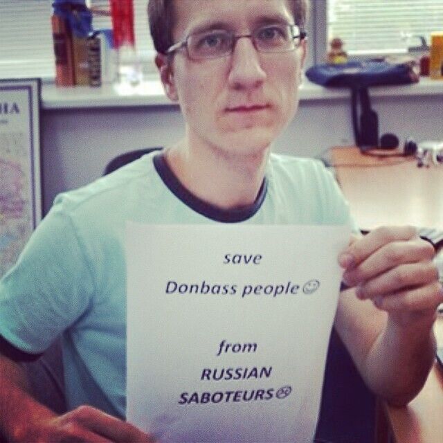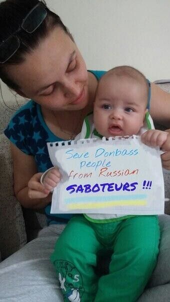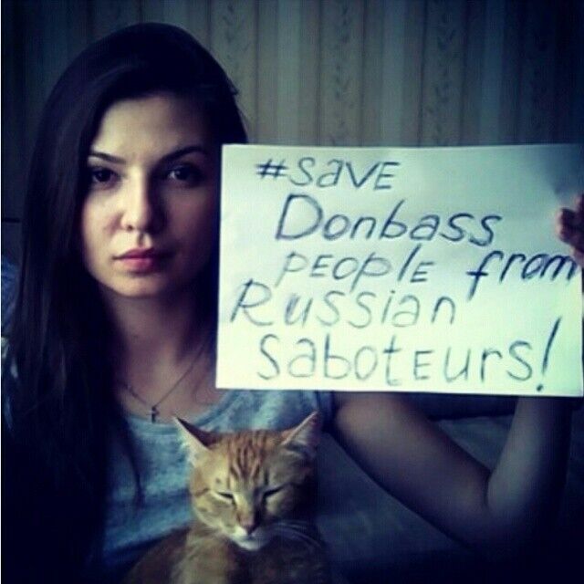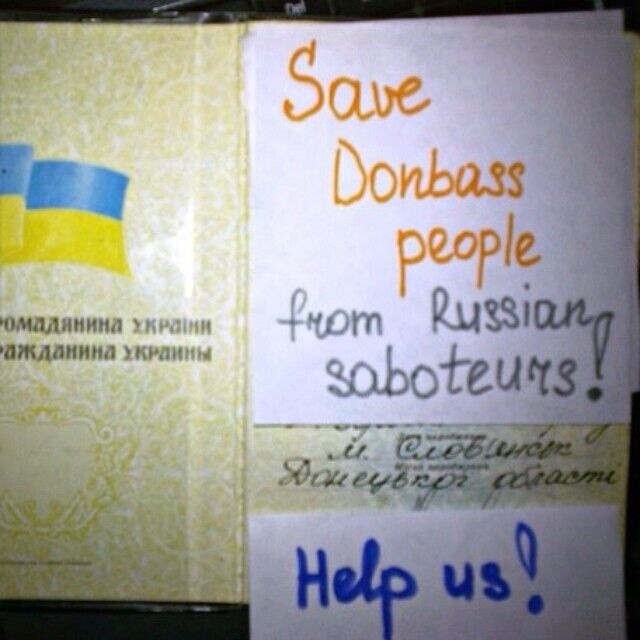 В соцсетях Instagram, Twitter и Facebook несколько дней назад начался флешмоб: пользователи со всего мира публикуют фотографии, на которых есть надпись #savedonbasspeoplefromrussiansaboteurs ("спасите Донбасс от российских диверсантов"). К акции подключились пользователи разных возрастов из разных регионов, в том числе проживающие в восточных областях Украины. Так, на одной из фотографий изображен паспорт жителя Славянска с призывом помочь его городу. Этот флешмоб стал ответом на аналогичный, запущенный в России #savedonbasspeoplefromukrainianarmy ("спасите Донбасс от украинской армии").