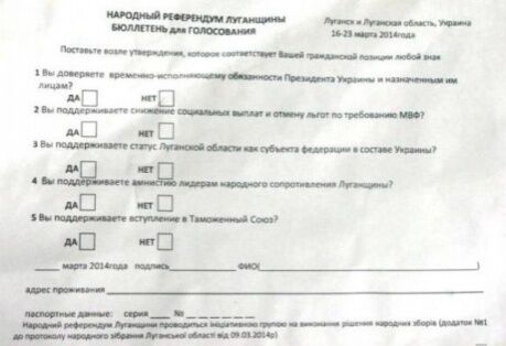 Как сообщает "Радио Свобода", всем пришедшим на центральную площадь города, выдали бюллетени и предложили дать ответы на пять вопросов: