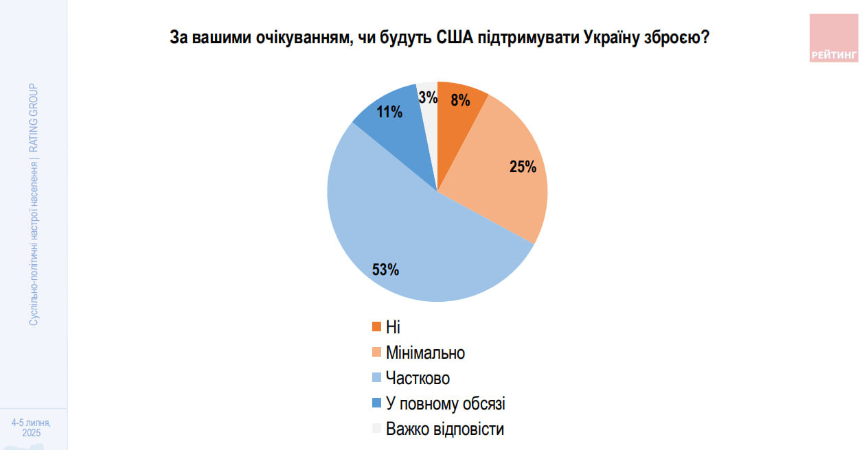 Согласно ответам респондентов, более половины украинцев ожидают, что США хотя бы частично будут продолжать поддерживать Украину.