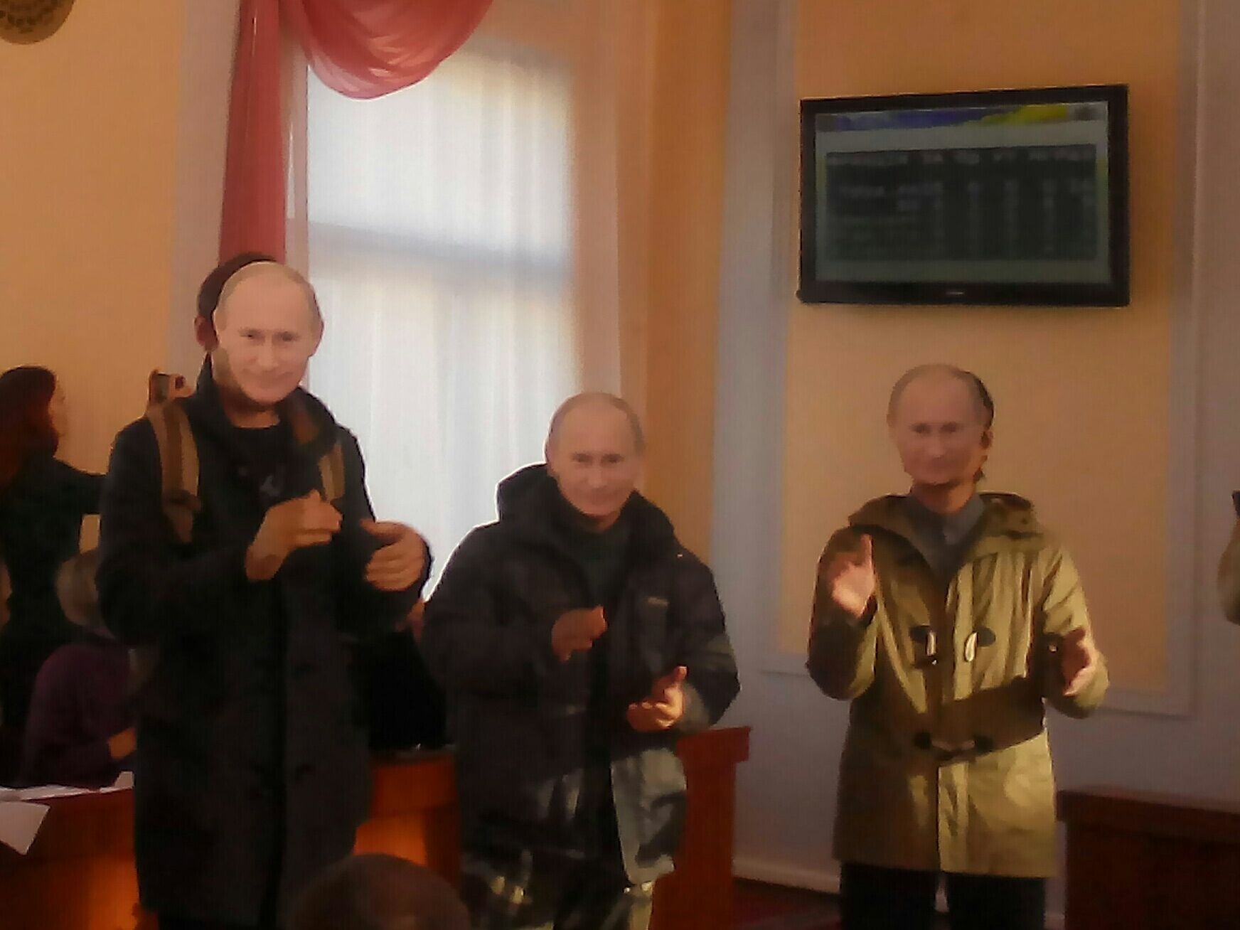 Как отмечает местное издание "Первая электронная газета", на сессию горсовета пришли активисты, которые надели маски с изображением Владимира Путина. Таким образом, по их словам, они хотели напомнить депутатам, что в России поддержат решение переименовать город в Елисаветград.