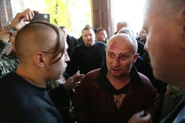 В пятницу, 3 октября, во дворе Апелляционного суда Киева произошли столкновения между бывшими бойцами "Беркута" и активистами Евромайдана, которые пришли на заседание по делу бывшего командира роты киевского "Беркута" Дмитрия Садовника, сообщает "Громадське ТБ". В ходе этого противостояния одному из активистов Майдана, Александру Кравчуку, разбили лицо. По информации телеканала, возле суда находится много милиции, но никто не пытался остановить нападающих.