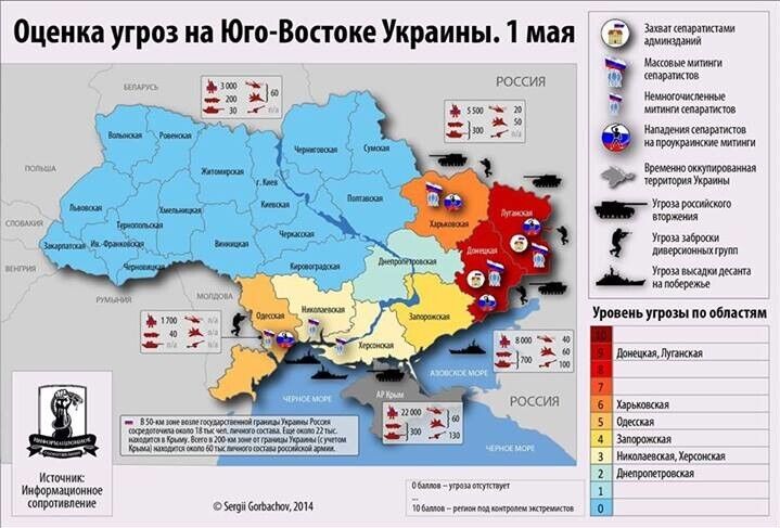 "Обращаем внимание: в 50-км зоне от госграницы РФ с Украиной – до 18 тыс. личного состава, в 200-км зоне – плюс до 20 тыс. (всего возле границ порядка 38 тыс., нижняя оценка – 36 тыс.), в Крыму – до 22 тыс.", – написал он.
