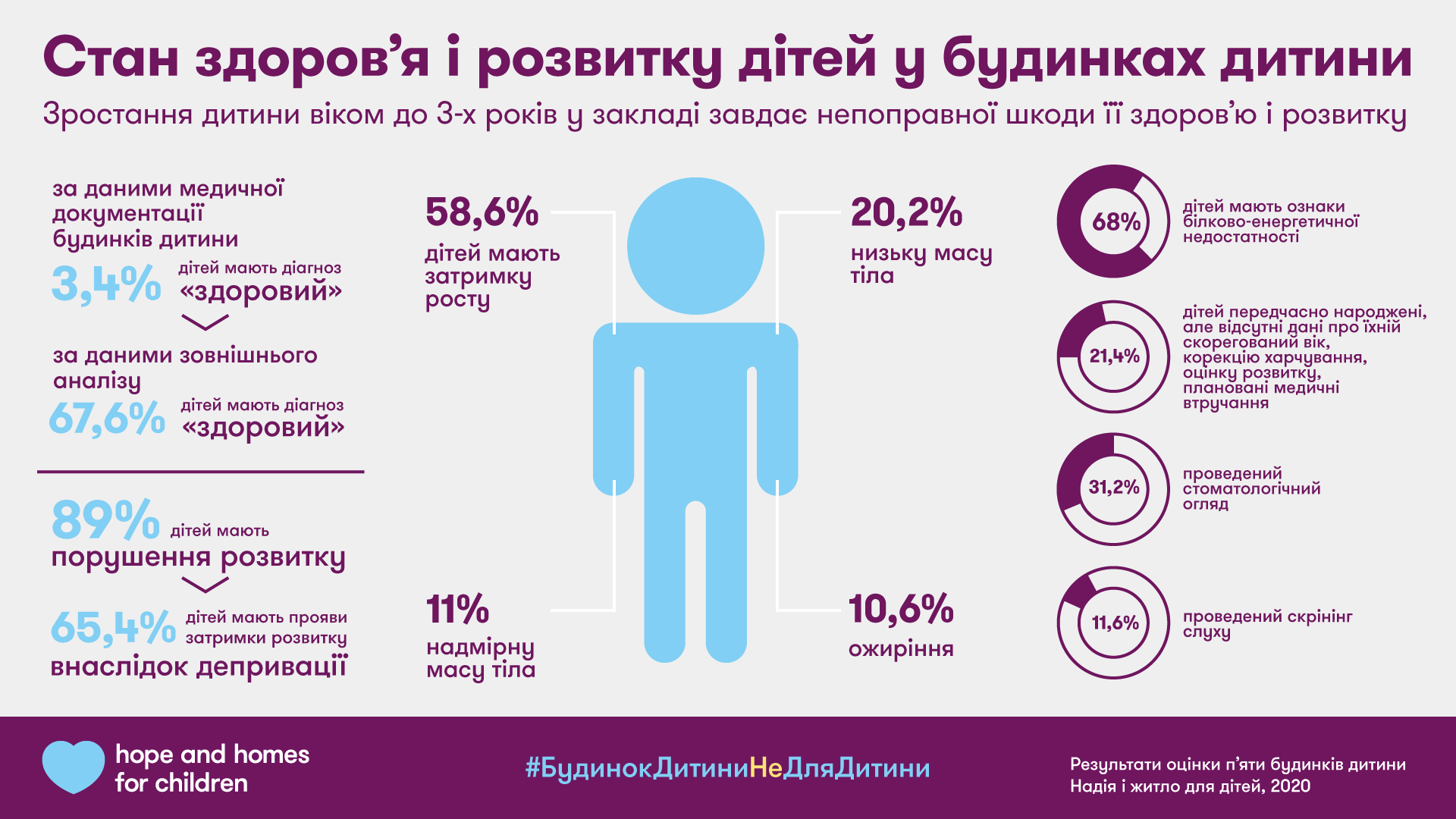 Организация провела исследование состояния 415 детей в пяти домах ребенка, функционирующих в Полтавской, Херсонской и Днепропетровской областях.