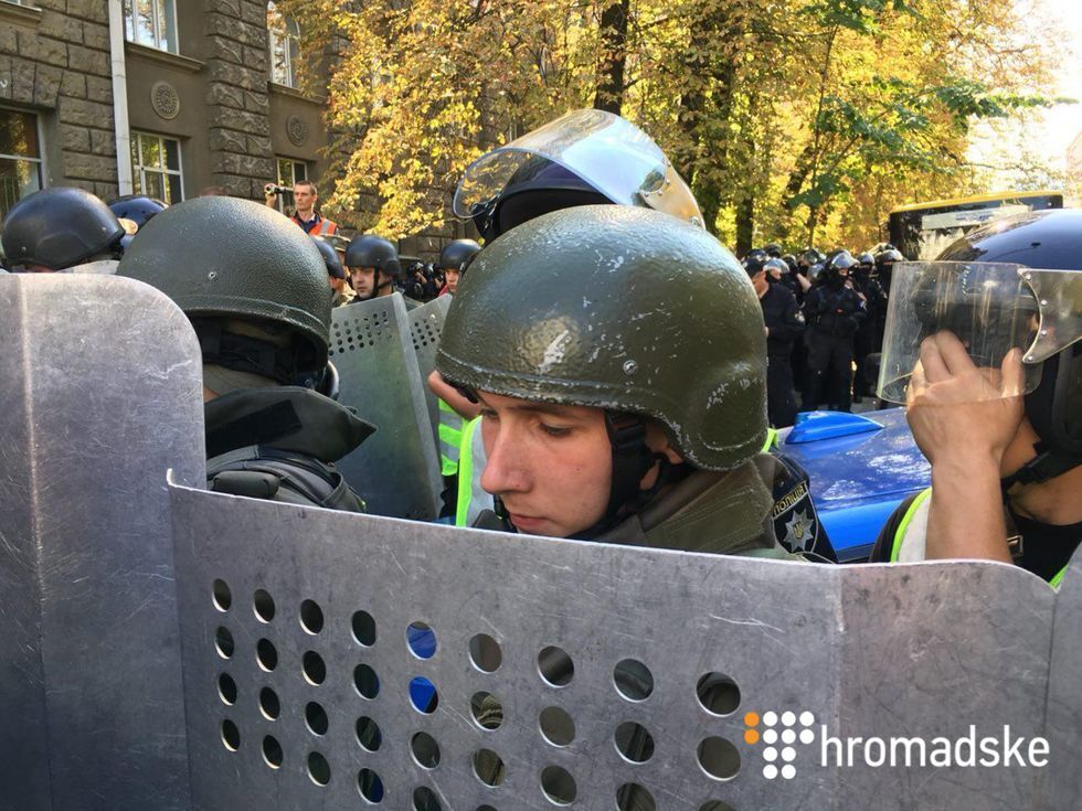 Участники акции протеста ждали, что к ним выйдет президент Украины Петр Порошенко.