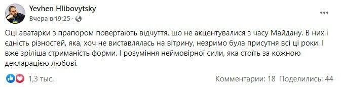 Для члена наблюдательного совета Национальной общественной телерадиокомпании Украины Евгения Глибовицкого аватарки с флагом вернули ощущения, которые не акцентировались со времен Майдана.