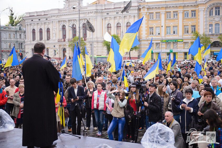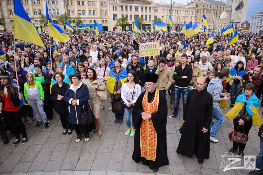В центре Харькова тысячи людей на площади молились за Украину. Фоторепортаж
