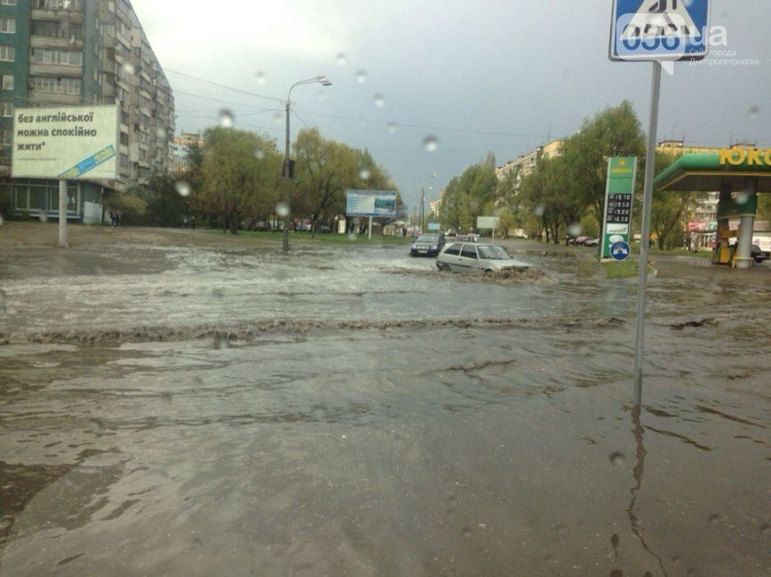 По данным издания "056.ua", в Днепре после часового ливня практически во всех районах города появились "озера". Наиболее были затоплены улицы Рабочая и Криворожская. В некоторых местах лужи по колено.