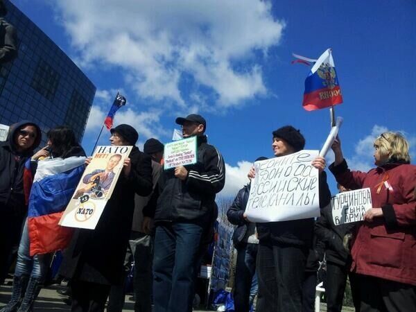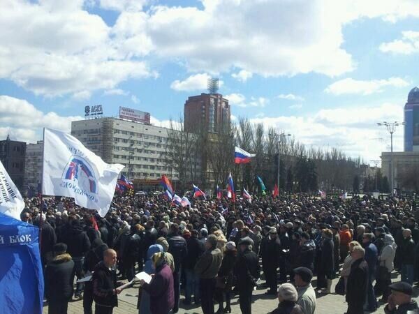 5 апреля несколько сотен активистов пророссийских организаций провели митинг на площади Ленина в Донецке. Митингующие выступили с требованием федерализации.