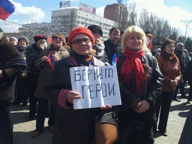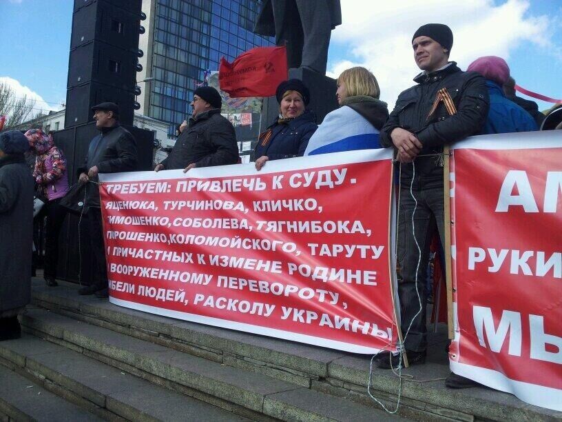 Главным требованием было проведение референдума о статусе Донецкой области и возможности вхождения региона в состав России. Митингующие выкрикивали лозунги в поддержку референдума, назвали "беркутовцев" – "рыцарями долга", а Небесную сотню – "черной сотней".