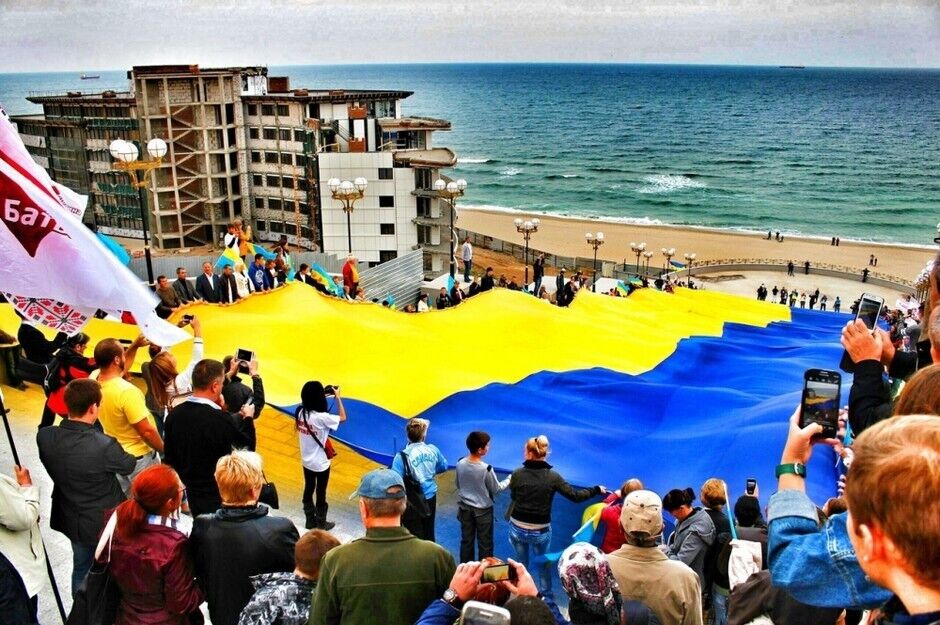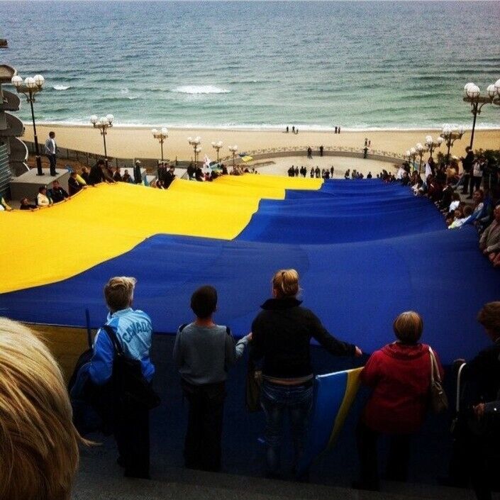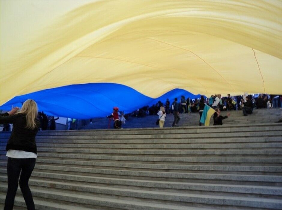 В Ильичевске Одесской области на недавно открытой "Потемкинской лестнице" развернули самый большой флаг Украины, площадь которого составляет 2400 м², сообщает Думская.net. Акция состоялась в рамках молодежного форума "Восток и запад вместе". В ней приняли участие более 150 студентов из 12 областей Украины.