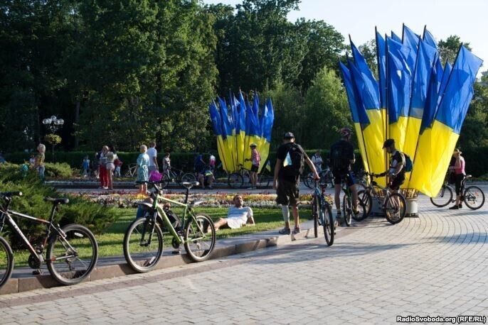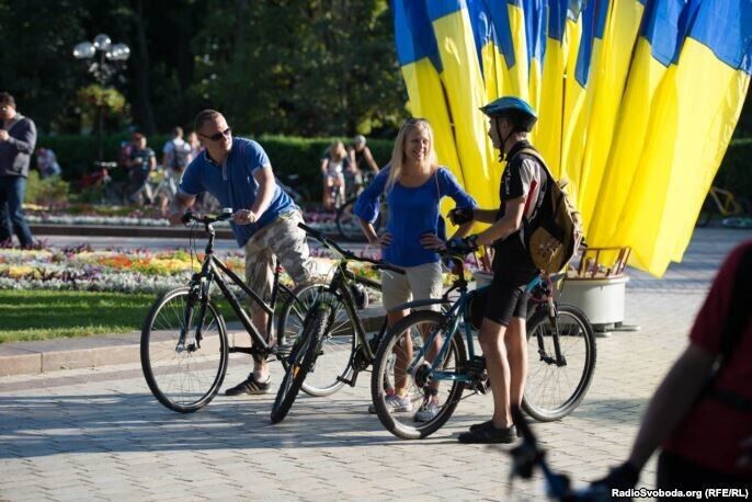 Более полутысячи профессионалов и любителей велосипедного спорта собрались в Киеве на велопробег "Критическая масса". Участники стартовали в столичном парке имени Шевченко. Их 20-километровый маршрут пролег мимо станции метро "Лыбедская", "Дружбы народов", "Печерская", "Майдан Незалежности" и завершился на Софийской площади, сообщает "Радiо Свобода". Велосипедисты везли с собой большие и маленькие флаги Украины. Помимо чествования украинского флага, активисты пропагандируют развитие столичной велоинфраструктуры.