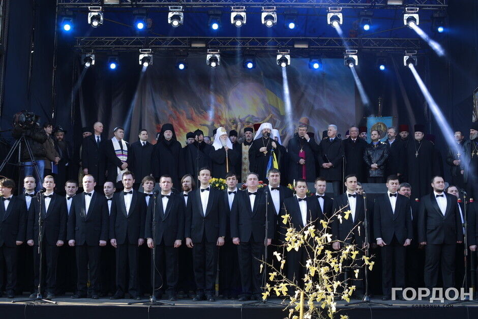 В 14.00 на Майдане Незалежности началось главное мероприятие дня в столице – концерт "Встанет Украина – мир правды взойдет". На сцене выступят группы "Хорея Козацька" и "Божичи", народные артисты Украины Фемий Мустафаев, Оксана Билозир, вокальная формация "Карт sound", дуэт "Сестры Тельнюк", Ирина Шинкарук, группы "Гайдамаки" и "Кому Вниз".