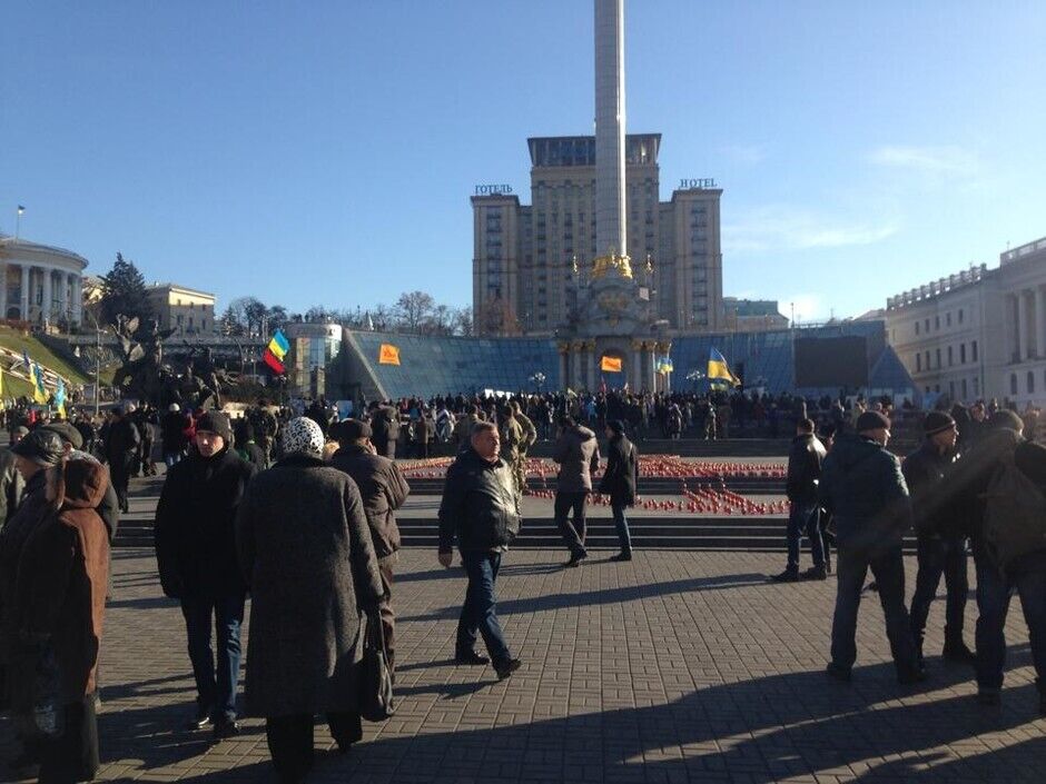 Сегодня в Киеве проходят мероприятия по случаю первой годовщины массовых протестов, получивших название Евромайдан. Президент Петр Порошенко, спикер Александр Турчинов, премьер-министр Арсений Яценюк почтили память погибших активистов возле мемориала на улице Институтской, часть которой была переименована в аллею Героев Небесной сотни. На Майдане открылась фотовыставка, там также собрались активисты.