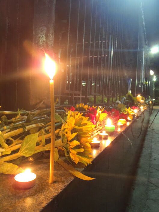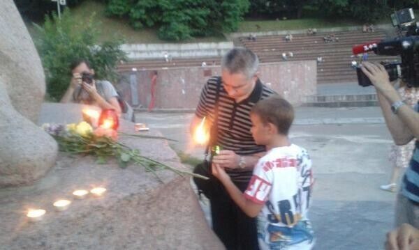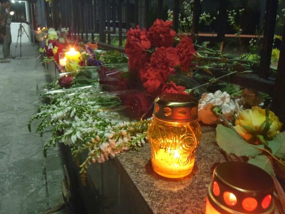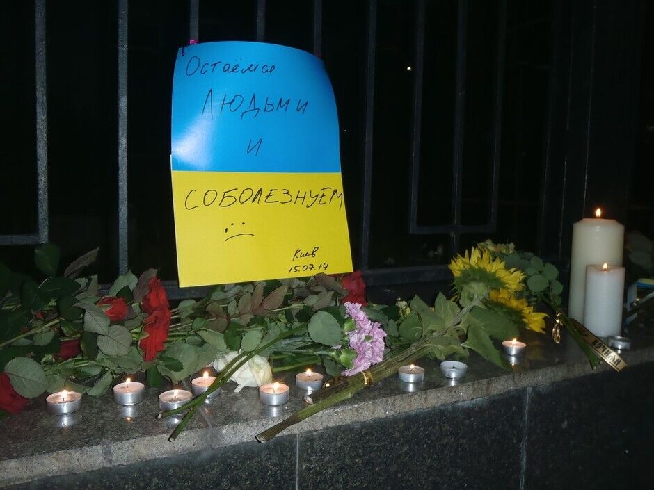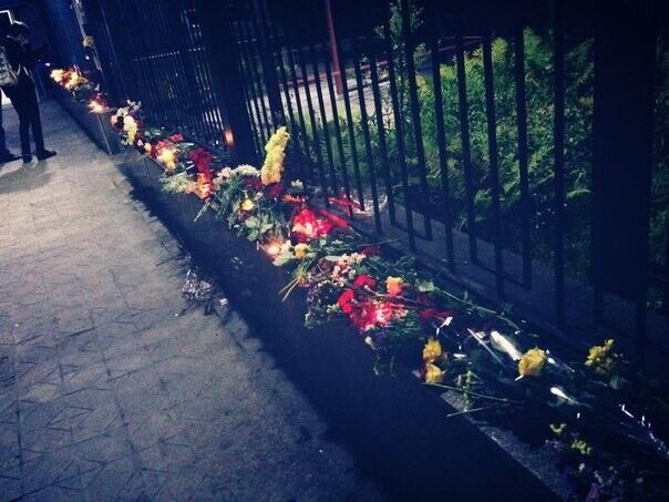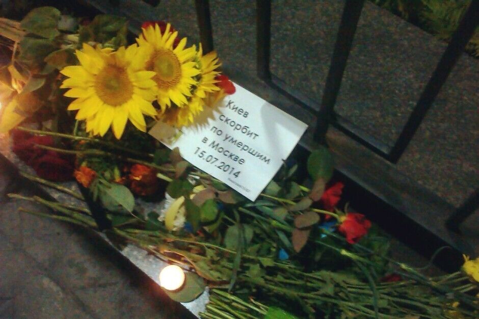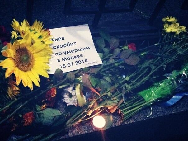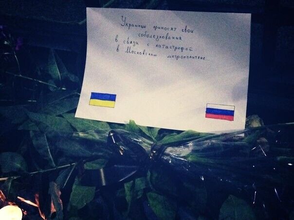 Киевляне несут цветы к посольству РФ, возле арки Дружбы народов зажигают лампадки. В столице состоялись акции памяти погибших в аварии в московском метро. Трагедия произошла в 08.39 по московскому времени в результате резкого торможения электропоезда. По предварительным данным, погибли 20 и ранены 160 человек."Остаемся людьми и соболезнуем", – пишут киевляне в соцсетях.