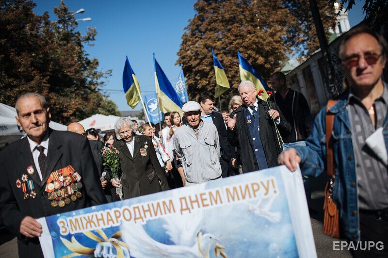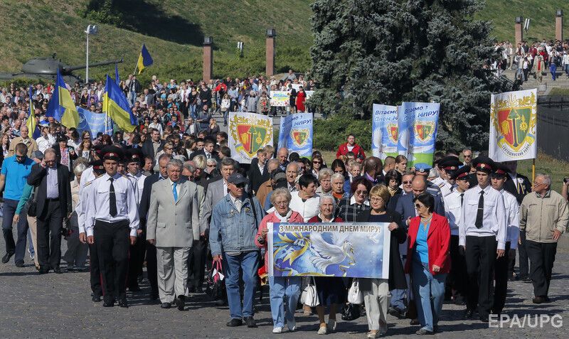 Сегодня, 19 сентября, в Киеве прошел Марш мира, посвященный Международному дню мира. Представители ветеранов, общественных организаций, молодежи и местных властей возложили цветы к памятнику воинам-афганцам, после чего пешим шествием прошли к музею Великой отечественной войны, где состоялся митинг.