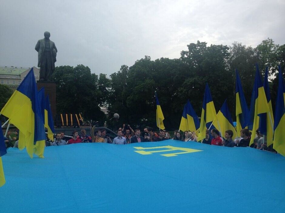 18 мая во время акции "Единая страна – Крым – Украина" в столичном парке им.Шевченко развернули самый большой в Украине крымскотатарский флаг, размером девять на шесть метров, сообщает "Укрiнформ".